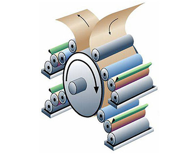 Ceramic anilox rolls, single knife reverse ink scraper, automatic ink supply.